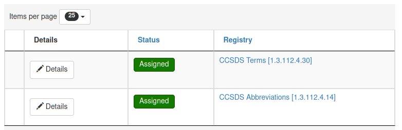 The registration rule for new values of this registry requires no engineering review, but the request must come from the official representative of a space agency, a member of the CCSDS.