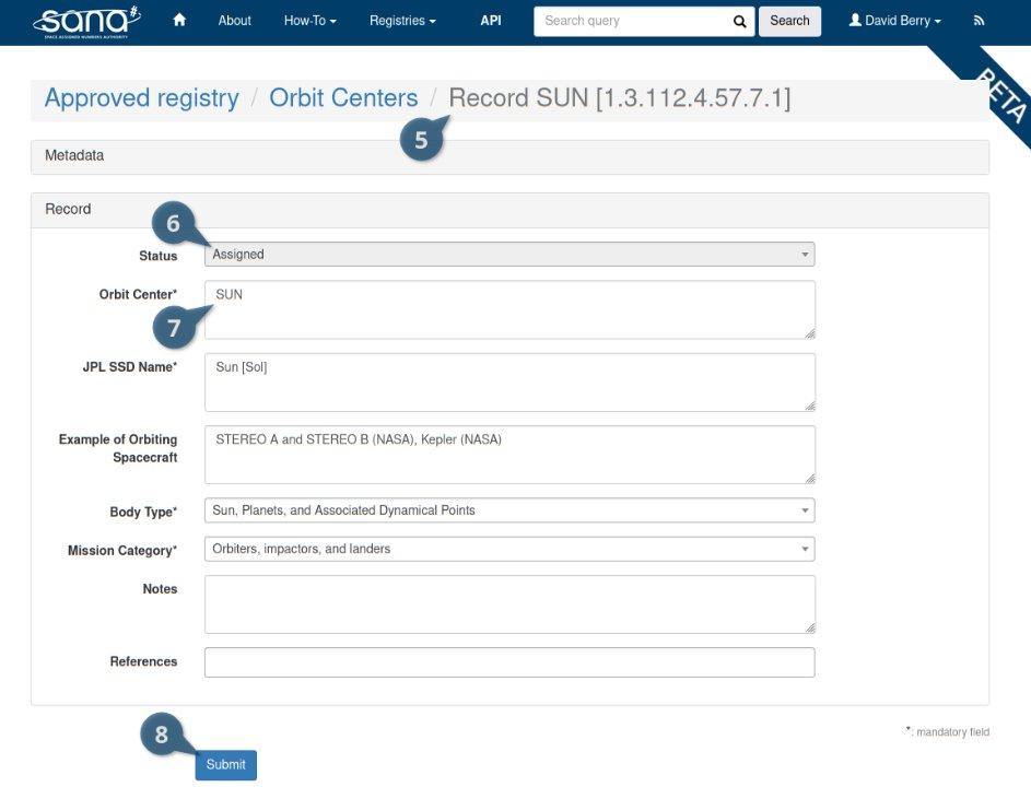 This section provides the indications on how to submit a request for a new SCID in SANA.