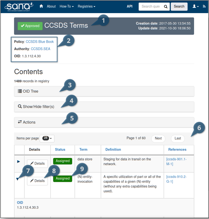 In the CCSDS document that defines the creation of a registry, the registration rule for that registry must be defined either within the above set of rules or by another rule. This restriction provides guidance to SANA on how to make assignments of new parameters for that registry. The identification of this rule is part of the template included in the SANA Considerations section of the document.
